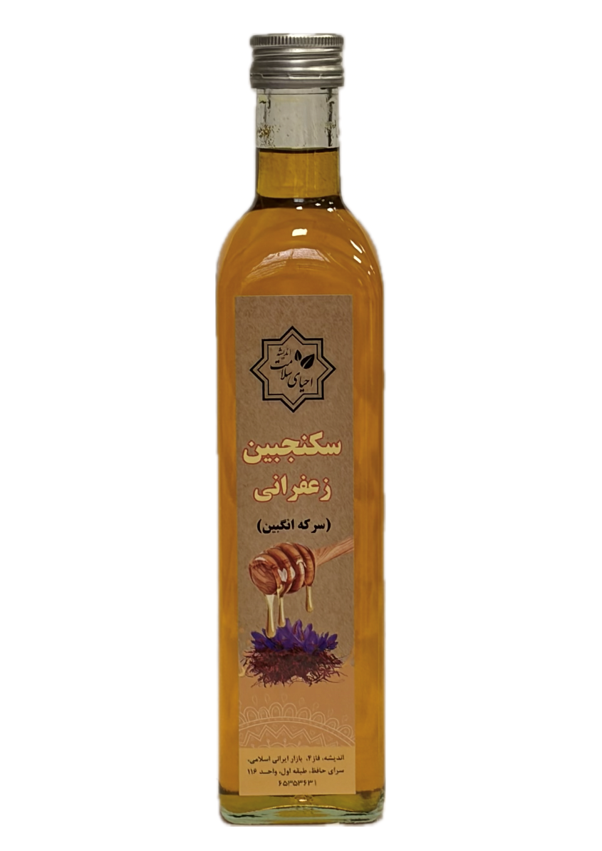 سرکه انگبین زعفرانی-سکنجبین زعفرانی درجه یک برند ارگانیک لند حجم 500 میلیلیتر